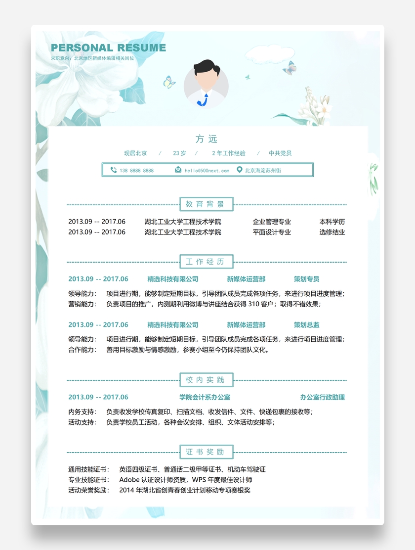 炫彩创意新媒体编辑个人求职简历模板由「外语派简历模板下载网」网站叶梓上传提供,VIP会员免费下载,简历模板支持软件为Word/Wps,格式为docx,语言为中文简历,「外语派简历模板下载网」网站专业提供新媒体编辑个人简历模板。