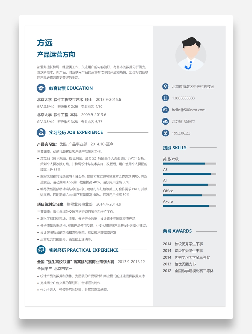 灰白商务产品运营个人求职简历模板由「外语派简历模板下载网」网站叶梓上传提供,VIP会员免费下载,简历模板支持软件为Word/Wps,格式为docx,语言为中文简历,「外语派简历模板下载网」网站专业提供产品运营个人简历模板。